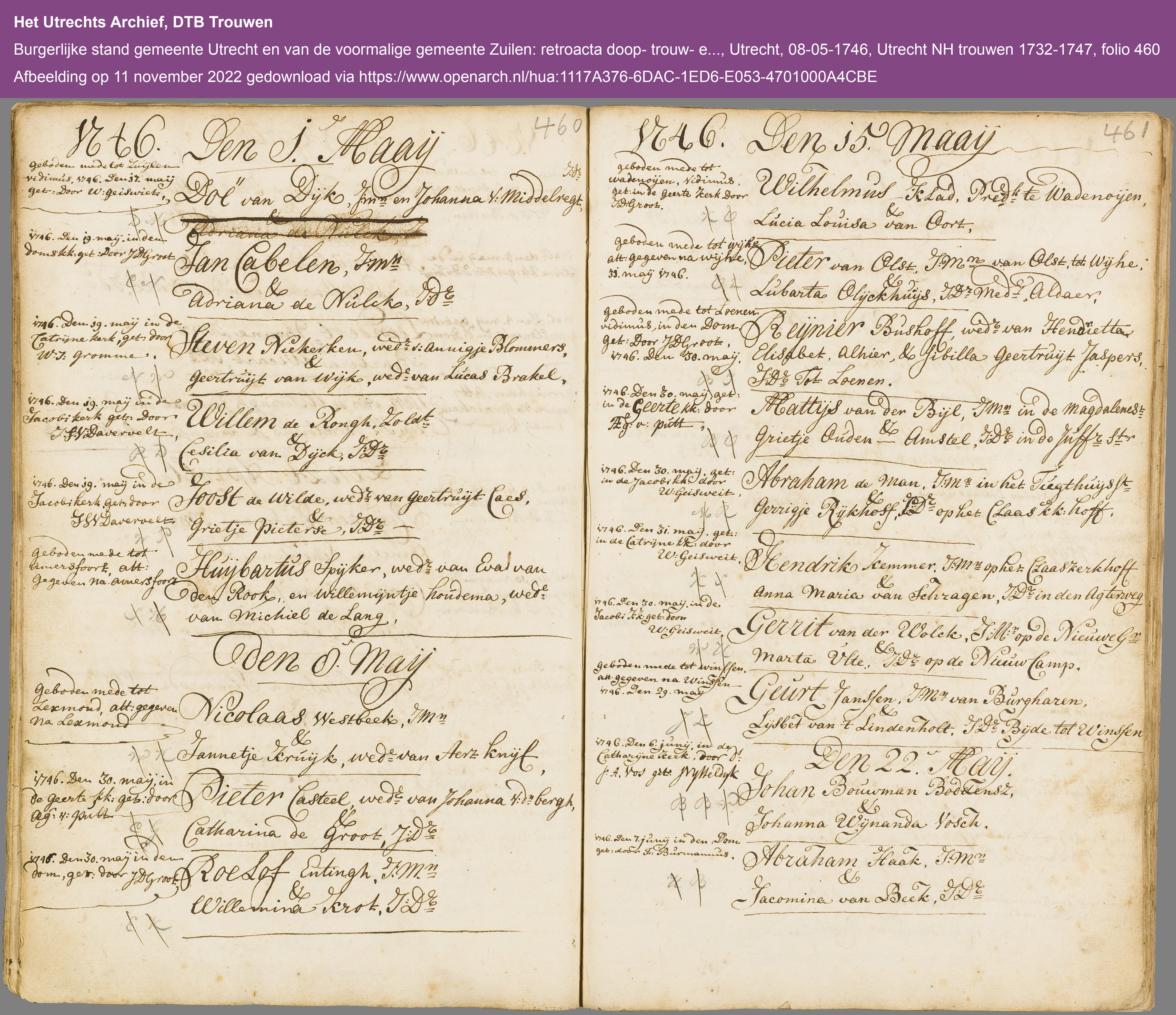 1746 huwelijk Jannitje Kruijk en Nicolaas weesbeek