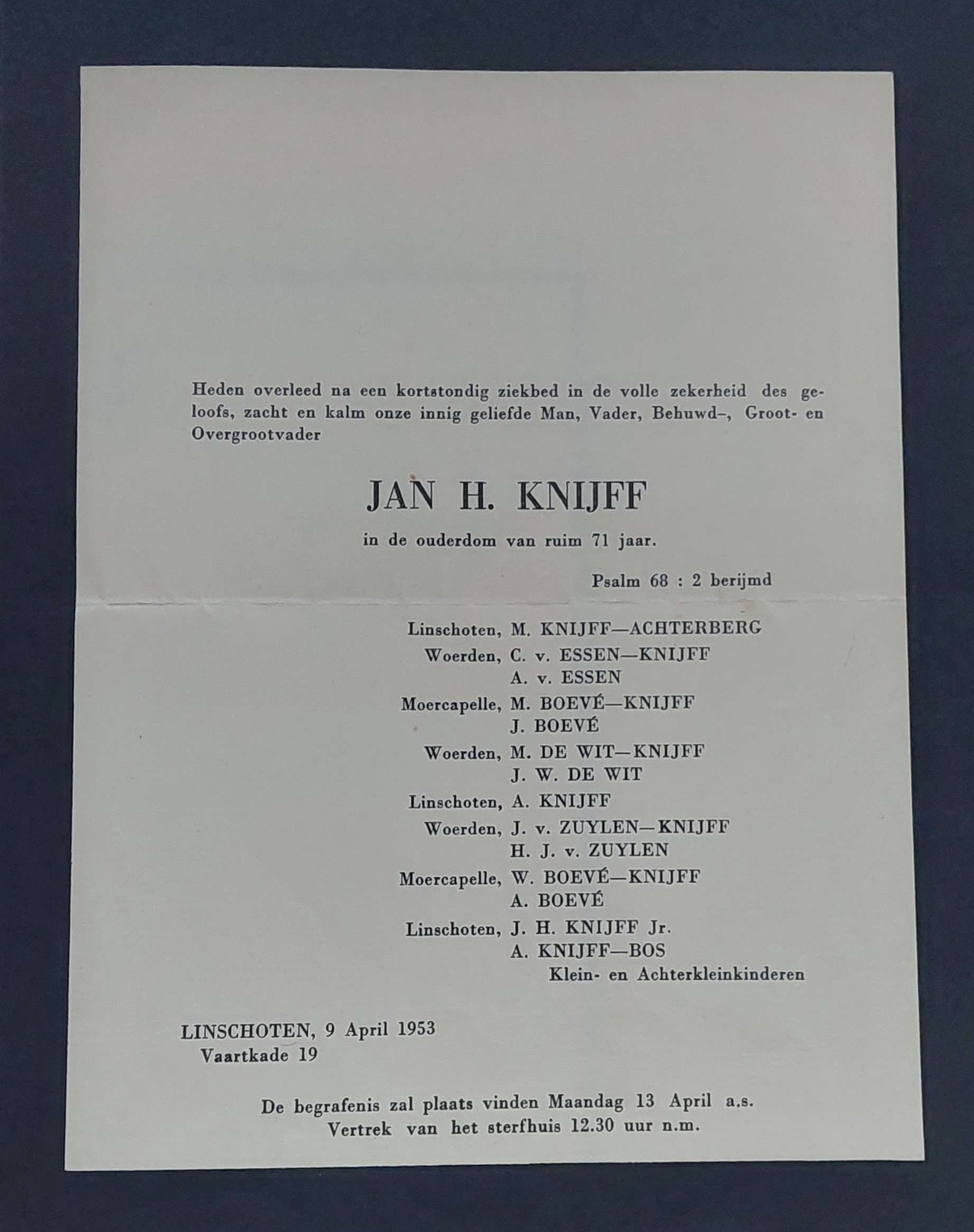 1953 overlijden J H Knijff